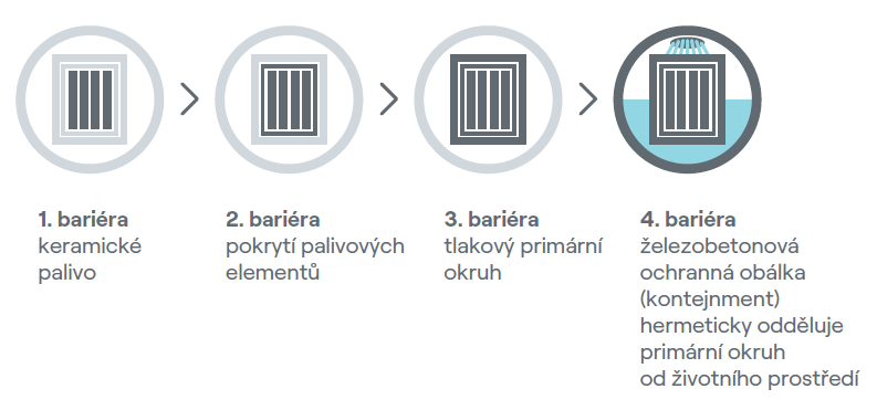 Principiální schéma ochranných bariér jaderné elektrárny