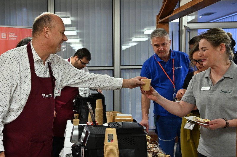 „Je to skvělá příležitost se takto před Vánocemi alespoň krátce potkat s částí našich kolegyň a kolegů a prohodit pár formálních i neformálních slov a osobně jim popřát hezké Vánoce,“ prohlásil Roman Havlín, který během akce nejen vařil kávu, ale také s úsměvem vítal příchozí. Nechyběl ani dezert v podobě drobného vánočního cukroví, vánoční štoly nebo vánočky, které připravili klienti a pracovníci organizace Vrátka z Třebíče.