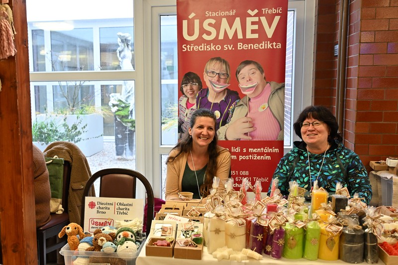 Letos stánky s originálními výrobky přivezla Domovinka a Úsměv z Třebíče, Barevný svět, Kuba to dá, Diakonie ČCE Myslibořice, RokytKa z Moravského Krumlova, Domov u Lesa Tavíkovice a Dětský domov Klubíčko Hrotovice a Náměšť nad Oslavou. Na jejich vzniku se často podíleli klienti dílen a organizací – od voňavých mýdel a svíček přes potravinové speciality až po jemné vánoční ozdoby.